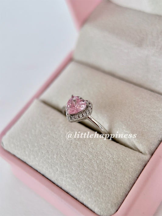 Anillo Corazón Rosa, aro Liso