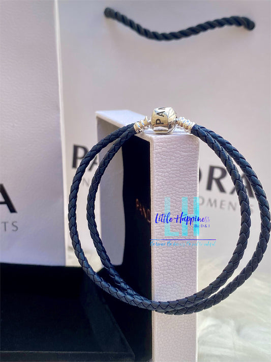 Pulsera en Leather Trenzado Doble Azul marino cierre tradicional