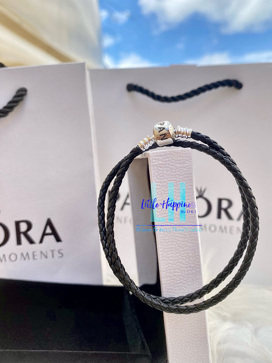 Pulsera Pandora Moments en Cuero Trenzado Doble Negro