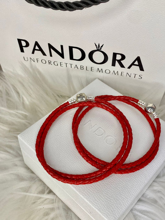 Pulsera Moments en Leather Trenzado Rojo cierre redondo
