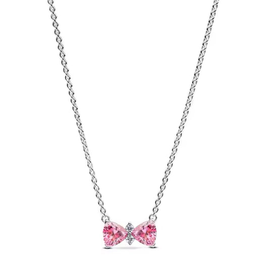 Conjunto Collar y Pendientes Lazo Brillante Rosa