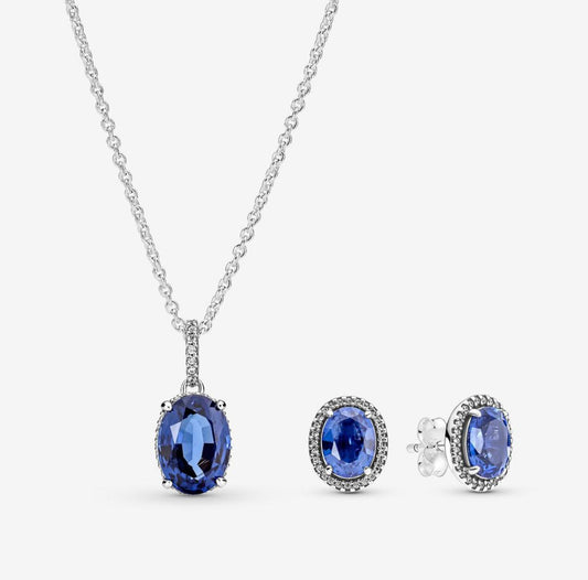 Conjunto de Regalo Halo Azul Brillante(Cadena + Aretes)