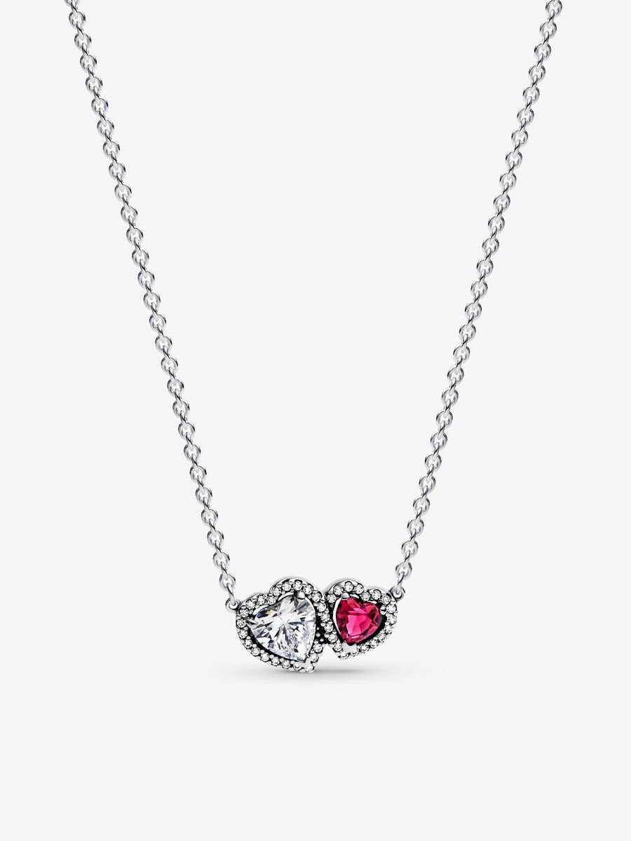 Conjunto Collar + aretes Doble Corazones Blanco y Rojo