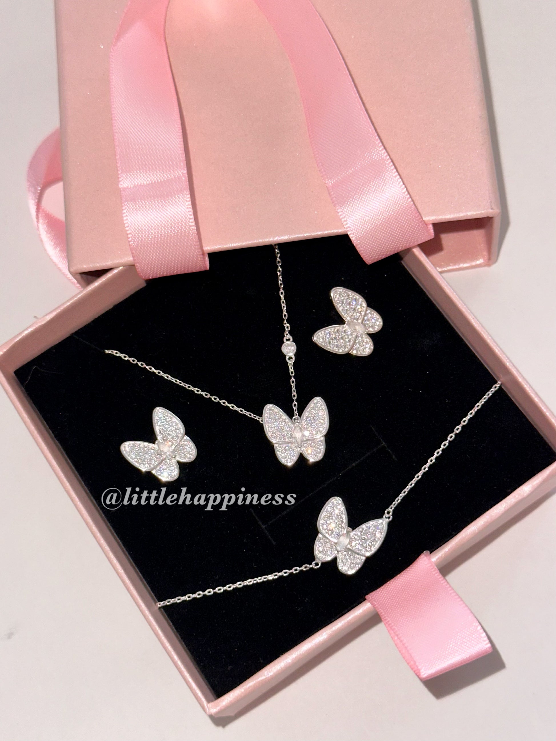Conjunto Collar + aretes + pulsera Mariposa Van Cleef plateado