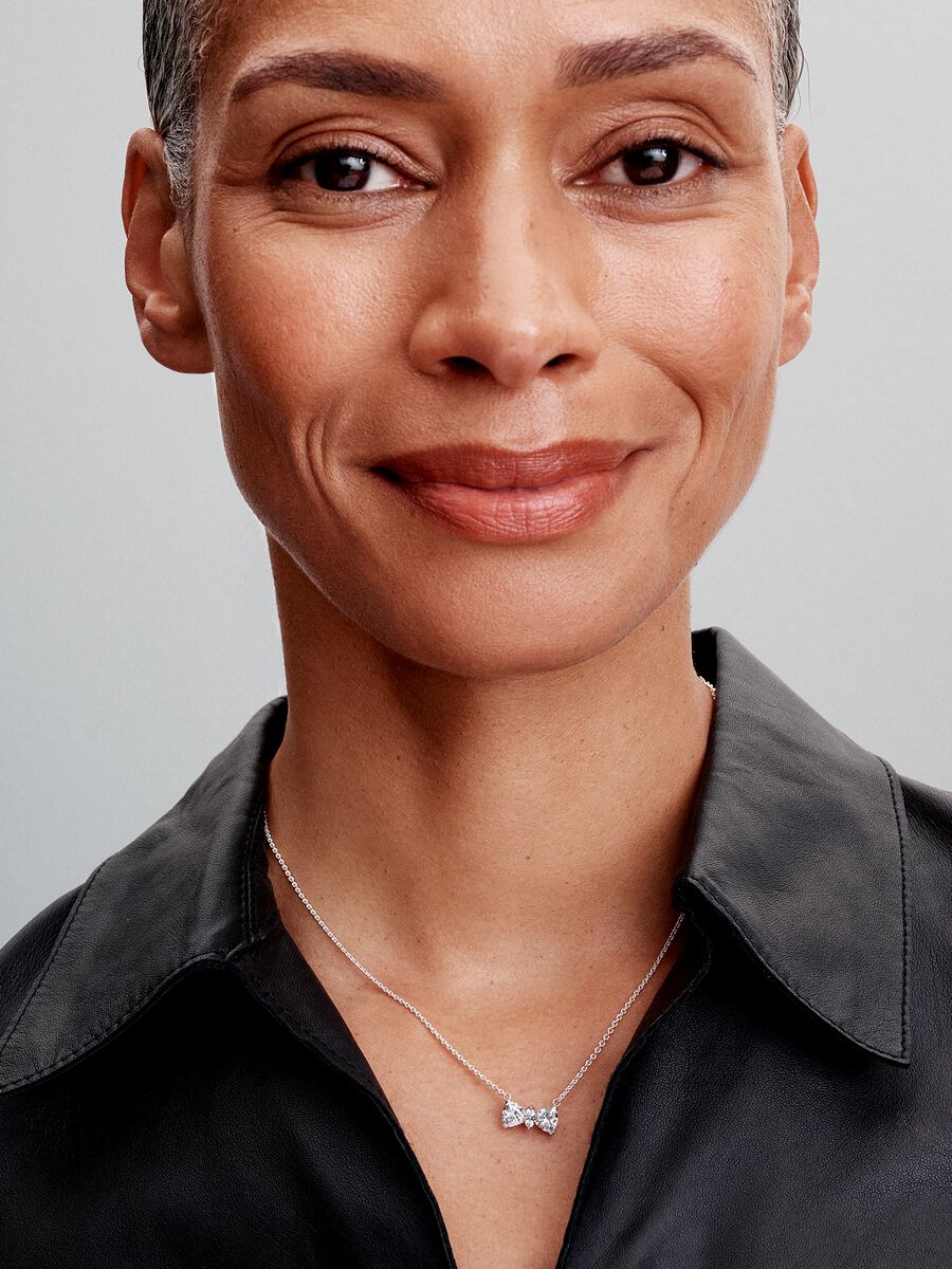 Conjunto Collar y aretes Lazo Brillante Blanco