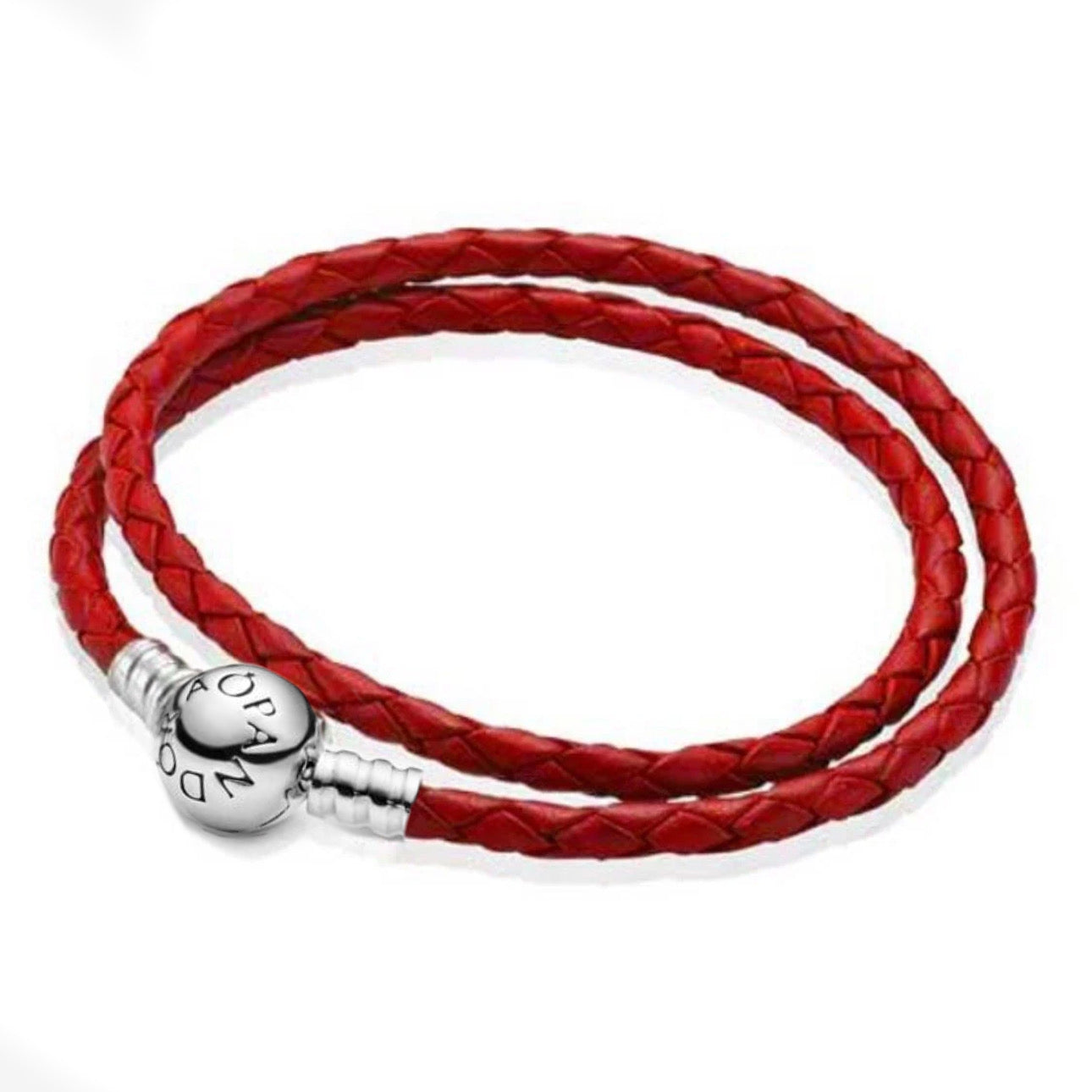 Pulsera Moments Pandora en cuero trenzado doble rojo y cierre en plata de primera ley para charms. La Pulsera icónica de Pandora se reinventa en cuero trenzado.